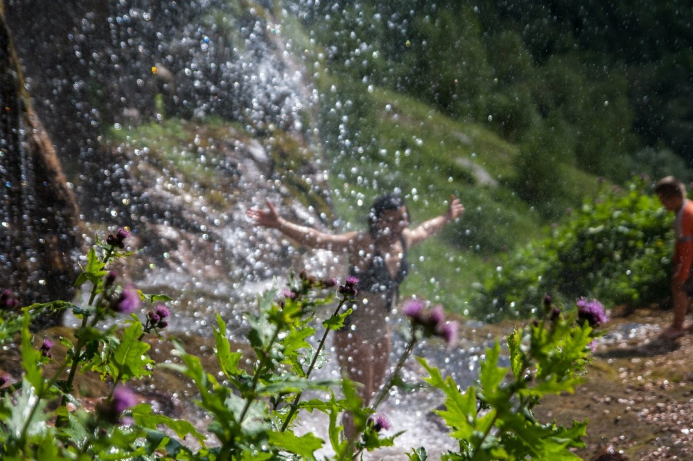 Желающие искупаться в водопаде и зарядиться нереальной энергией — берите купальники и плавки! Ведь кристально чистая талая вода Фиштинского ледника успевает прогреться, пока летит со своего уступа.