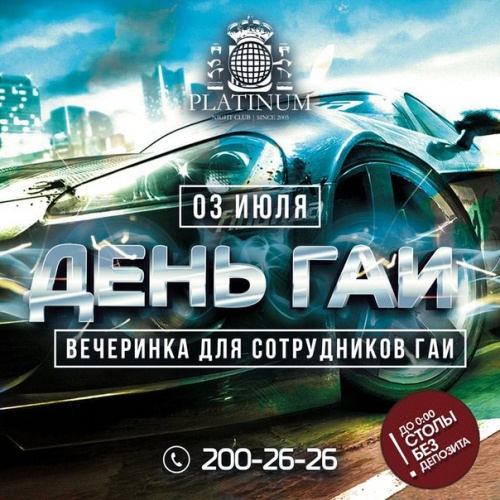 Клуб «Платинум» приглашает на вечеринку, посвященную Дню ГАИ.Столы без депозита.
