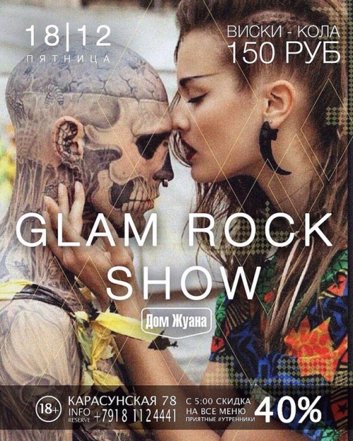 18 декабря в Доме Жуана Glam Rock Show — вечеринка в стиле глэм-рок.В программе: