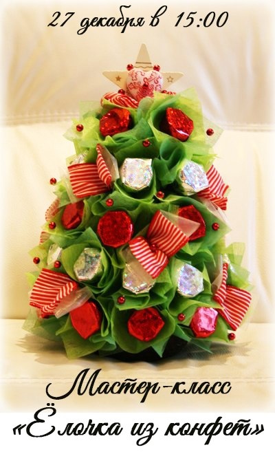 Антикафе «Песочница» приглашает на мастер-класс по изготовлению елочки из конфет.Ёлочка поднимет настроение, украсит новогодний стол, создаст атмосферу тепла и уюта в доме или офисе. Отличный подарок на праздник и детям, и взрослым, и коллегам.