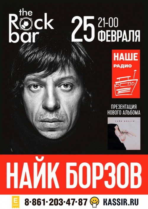 25 февраля Найк Борзов представит в краснодарском клубе The Rock Bar новый этно-техно альбом «Молекула», релиз которого состоялся 4 декабря 2015 года. Начало концерта в 20:00. Новая программа музыканта — это творческий эксперимент, соединивший в себе первобытную мощь кахона и бонгов в переплетении с гитарами, философской лирикой и узнаваемым с первых нот гипнотизирующим голосом Найка. Сам термин #этнотехно был придуман музыкантами во время работы над пластинкой в старом ДК города Видное, где уже записывалось несколько сольных альбомов музыканта, а также пластинки ранних проектов Найка.«Прошлой зимой я снял в Видном большой зал старого ДК 1950-х годов, где я и сам выступал когда-то. Там потрясающее пространство: колонны, лепнина в виде цветочков, колосков и спортсменов как в «Олимпии» Лени Рифеншталь».