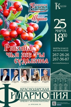 Государственный концертный ансамбль танца и песни «Кубанская казачья вольница», Государственный концертный ансамбль «Ивушка»Солисты: Народная артистка России Вероника Журавлева-Пономаренко, Заслуженные артисты Кубани Николай Колчевский, Анастасия Галушко, Алина Даренкская, Игорь Владимиров.