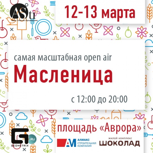 Масштабная open-air Масленица — на площади перед кинотеатром «Аврора» 12 и 13 марта с двенадцати дня.- Концерты