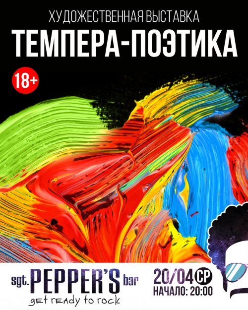 Однодневная выставка молодых краснодарских художников «Темпера-поэтика», на которой будут представлены работы разнообразных стилей и направлений, состоится 20 апреля в «Sgt. Pepper's bar» в рамках мероприятий литературного клуба «Поэтика». Посетителей ждут мир красок, глубина цвета и неисчерпаемое звучание изобразительного искусства.Участники: Анхен Герц, Дмитрий Селезнёв, Денис Москалёв, Наталия Сарана, Эля Полякова, Екатерина Кочеткова, Анастасия Белкова, Джимми Питз, Дмитрий Иванков, Влада Щукина, Люси Ню, Юлия Янгулова, Владислав Щетиков, Полина Чукова, Лиля Плахотнюк, Татьяна Татаренко, Маргарита Николаева, Ира Афанасьева, Таня Болдакова, Яна Булгакова, Натали Зиман, Александр Бондаренко, Роман Сойда.
