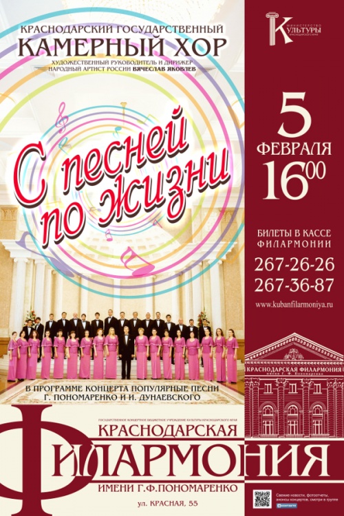 Краснодарский государственный камерный хорВ программе концерта популярные песни Григория Пономаренко и Исаака Дунаевского
