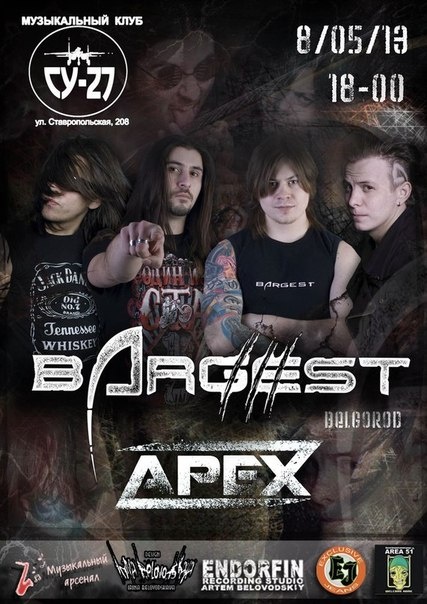 Впервые в Краснодаре.Белгородская alternative metal группа Bargest берет свое начало в 2008 году. Коллектив делил сцену с CATHARSIS и КПП, с группой «Эпидемия» и «Черный Обелиск», с ТТ-34, ТКН, Amalgamma и др.