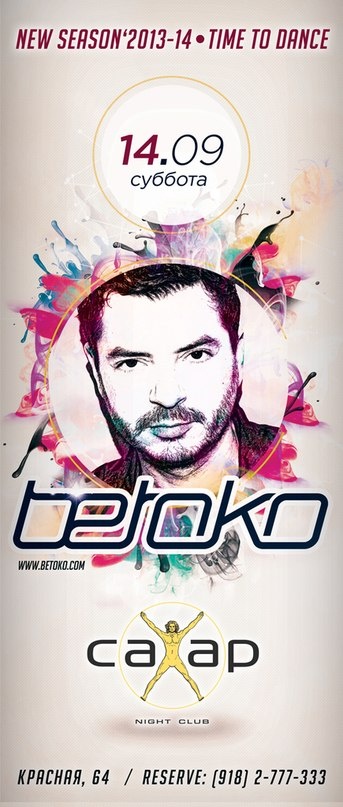 СAXAP CLUB представляет грандиозное празднование открытия четвертого танцевального сезона — самое долгожданное мероприятие для искушенных ценителей электронной музыки.Beto Cohen или Betoko родился в Мексике, в 2002 году переезжает в Лондон, с этого времени и начинается его стремительное восхождение на музыкальный олимп. Betoko начинает сотрудничать с легендой Amnesia Ibiza музыкантом Mar-T, основателем грандиозного лейбла Wow! Records, со Steve Lawler, Sven Vath, Marco Carola. Сейчас релизы Betoko используются в шоу Мадонны