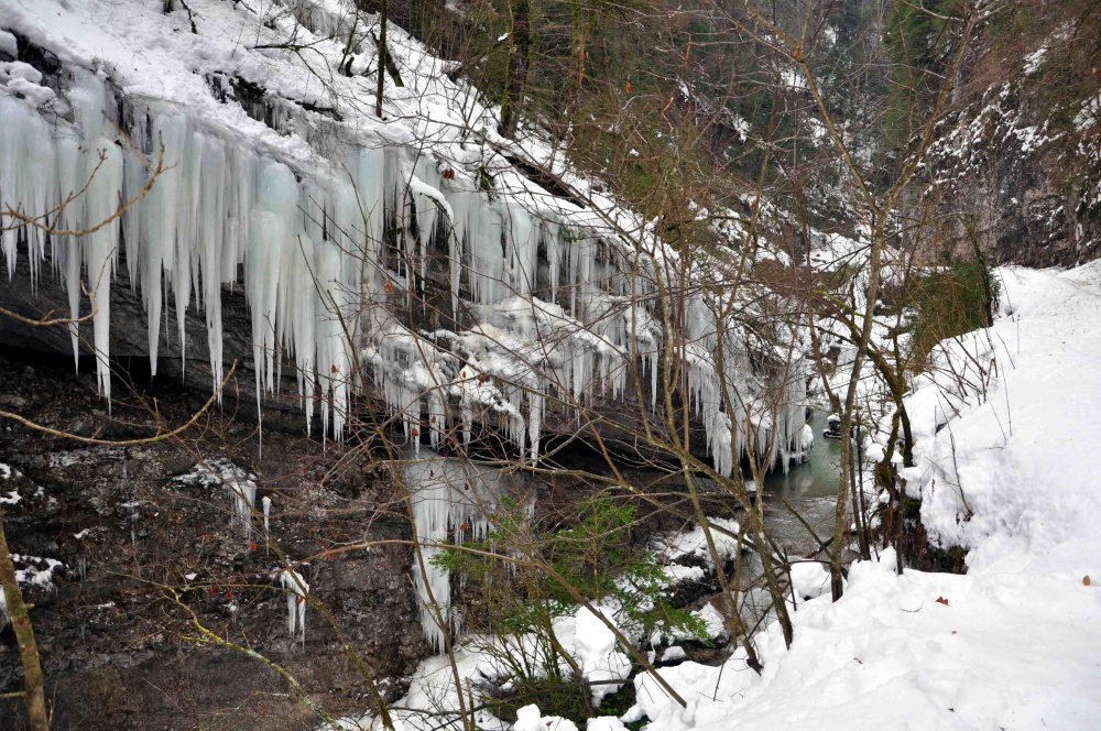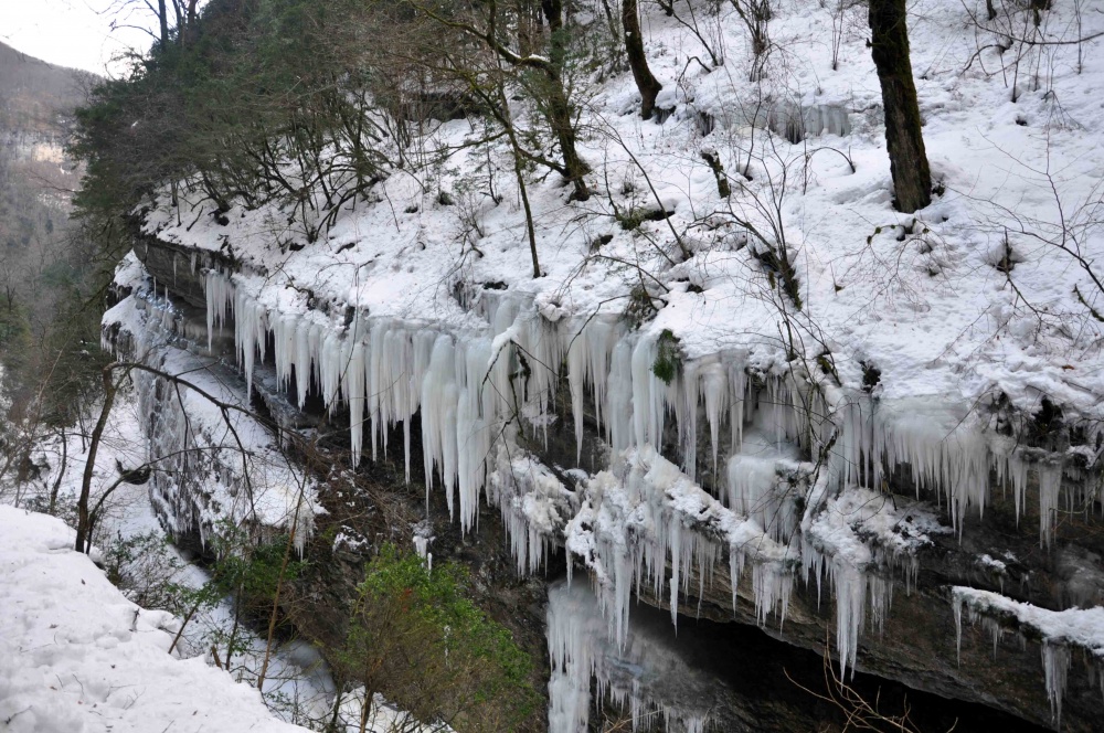 Есть у заледеневшего ущелья какое-то особое очарование. Летом оно прекрасно, но именно зимой оно сказочно. Увы, фотографии не могут всего передать, точнее они вообще ничего не передают, мне даже стыдно их выкладывать, настолько хуже они всей той красоты, что можно увидеть собственными глазами.