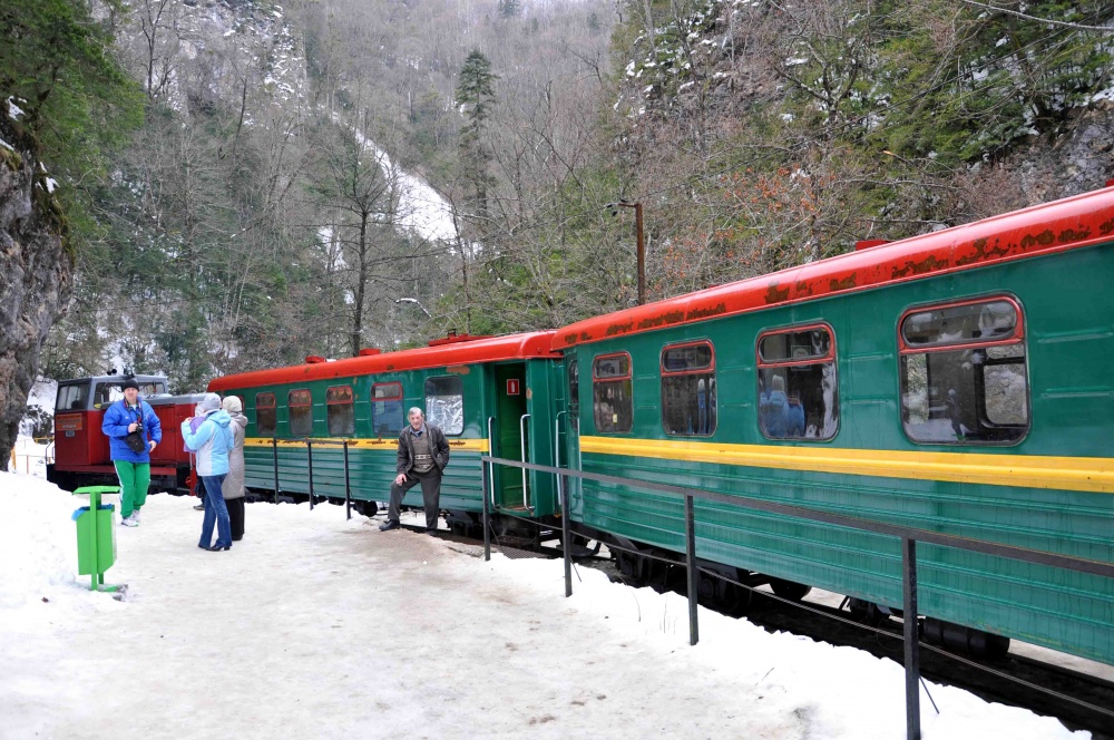 Весь остальной участок ущелья можно пройти пешком, это примерно такое же расстояние, что проходит поезд. В ущелье зимой дышится легко, а идти скользко, обуваться и одеваться лучше по погоде. В Краснодаре и близко не было снега, когда мы уезжали, здесь же его полно. Так что рассчитывайте. Кроме того, когда мы там были, шел моросящий дождь, я не подумала, что такое может быть, поэтому промокла.
