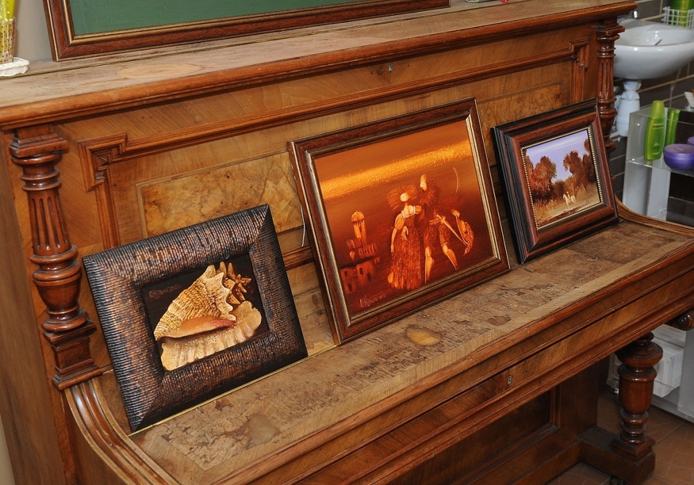 У нас присутствуют и арт-объекты. Антикварное пианино, к сожалению, не рабочее. Сундуки. Это помещение наполнялось спонтанно. Просто «приплывали» какие-то интересные предметы, которые в дальнейшем стали нашей визитной карточкой, не в каждом салоне такое увидишь.