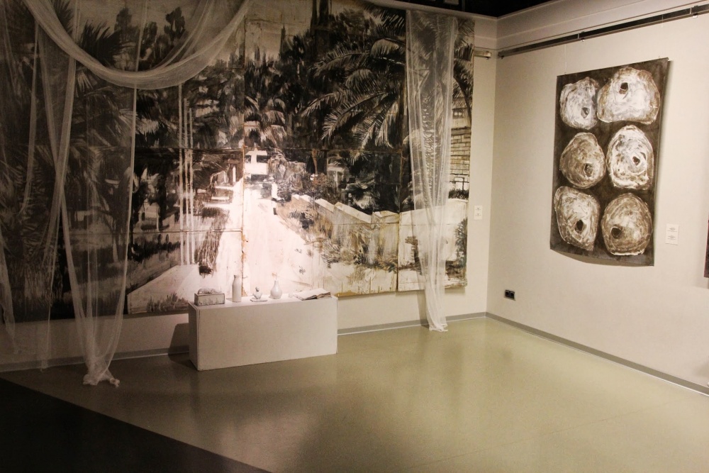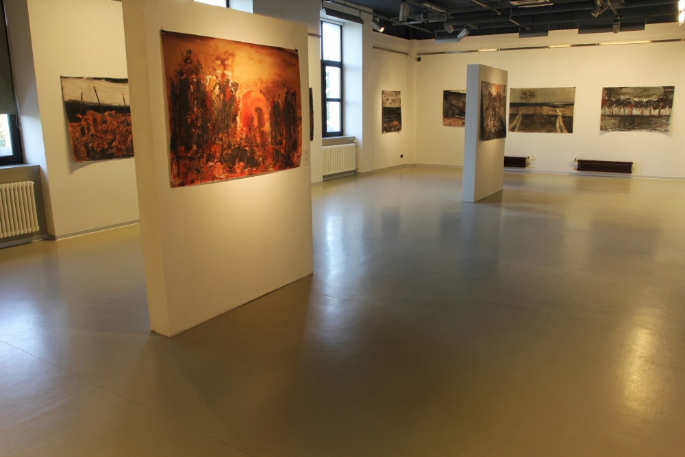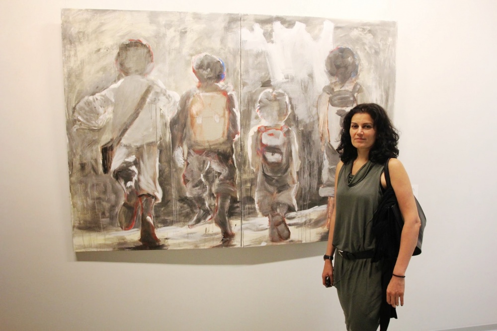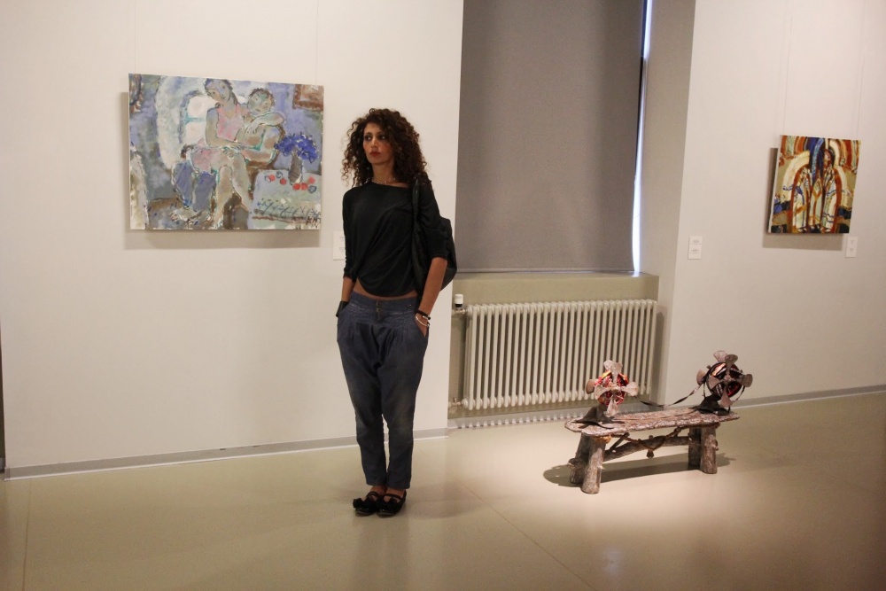 «Хотя, это работы художников солнечного края, но если честно, очень много темных красок заметили, все такое мрачное, пасмурное. Может, это в связи с глобализацией и урбанизацией современного мира? Все ссылается на негатив. Может, это и с обстановкой связано, если люди живут в крае не очень хорошо. Здесь много черного цвета — земли, плодородия и это говорит причастности к тому краю. Откуда столько красного цвета? Здесь какой-то осадок, может, даже от советского времени.»