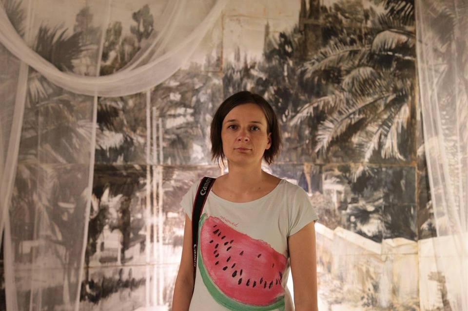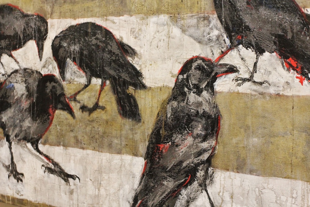 Очень мрачно на самом деле все то, что я здесь вижу. Для меня символ этой выставки это черные вороны на белых полосах (картина Галины Хайлу «Переход»). Может, художники уже и вышли на белую полосу, но там все равно пока сидят черные вороны. Хотя много чего и трогательного. Мне понравилась «Песнь песней», потому что я как актриса могу представить этот объект в театральном перформансе. Это не ново, тем не менее, здесь интересная фактура.