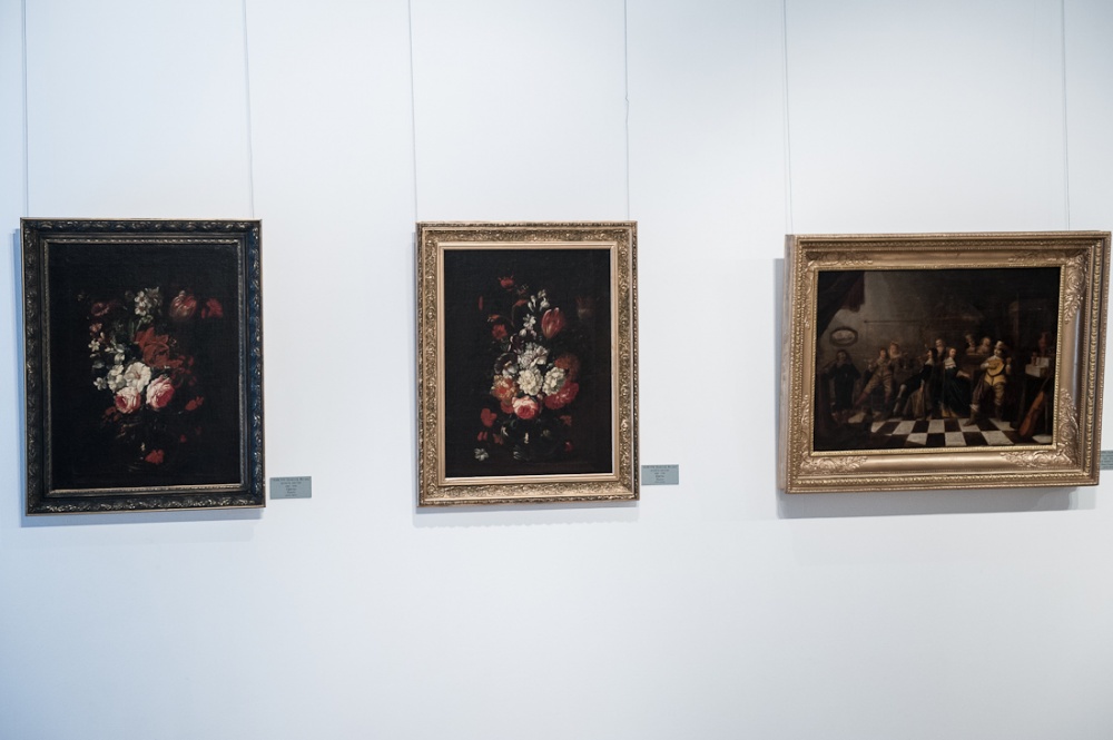 Среди экспонатов – картина «Бой всадников на мосту» Якоба Мартса, которая была в числе первых петровских закупок и находилась в домике Петра I в Петербурге. А также картина Карела Мора «Отшельник», десять произведений из собрания русского путешественника и географа П.П. Семенова – Тян-Шанского, среди которых: офорты Рембрандта «Бегство в Египет» и «Успение Богоматери», «Скалистый пейзаж» Якоба Рёйсдаля, натюрморт Баренда Меера. Также представлена ваза 17 века из делфтского фарфора.