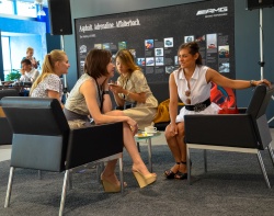 По условиям автоквеста, экипаж автомобиля — это водитель плюс штурман, естественно тоже девушка. Я взяла с собой подругу Анастасию Кащенко, которая работает дизайнером в рекламном агентстве. Она сделала нам футболки с изображением колеса и туфель — все выполненно в розовых блестках. В коротких шортах, блестящих футболках и с отличным настроением, мы отправились в автосалон «Мерседес» КЛЮЧАВТО, именно там был старт автоквеста.