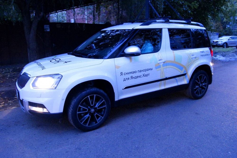 Мы встретились с одним из двух работающих в городе экипажей и узнали о том, как создаются «Яндекс.Карты». Из общего потока автомобилей этот «Шкода Йети» отличается, прежде всего, фирменной раскраской и кронштейном для крепления камеры на крыше.